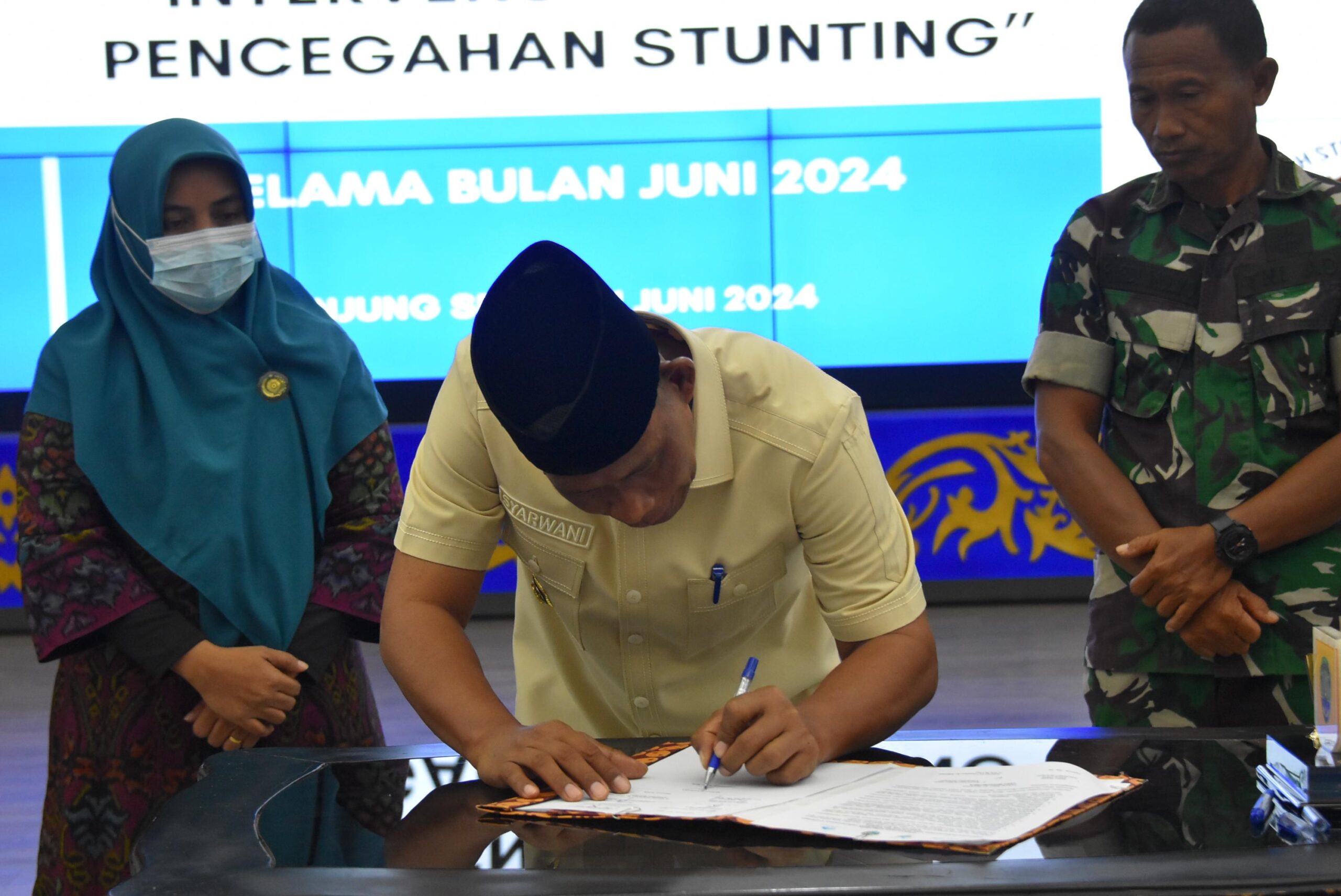 TANDA TANGANI : Bupati Bulungan Syarwani saat menandatangani dokumen berkaitan dengan penekanan terhadap masalah stunting di Bulungan.